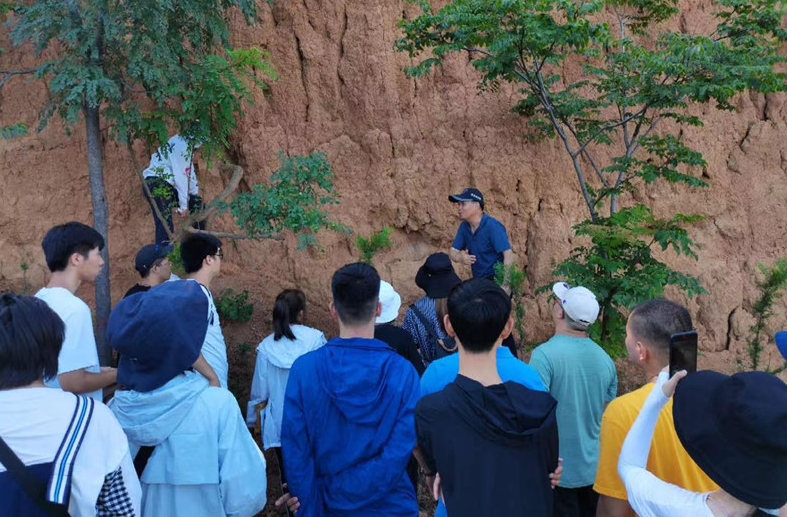 王家鼎给学生讲解如何识别滑坡面的滑动标志。受访者供图