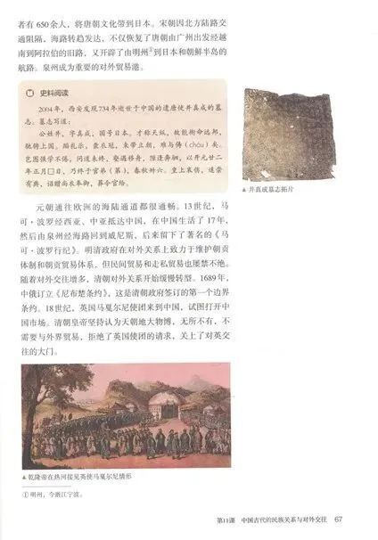 井真成墓志铭收录于《普通高中教科书·历史选修性1》