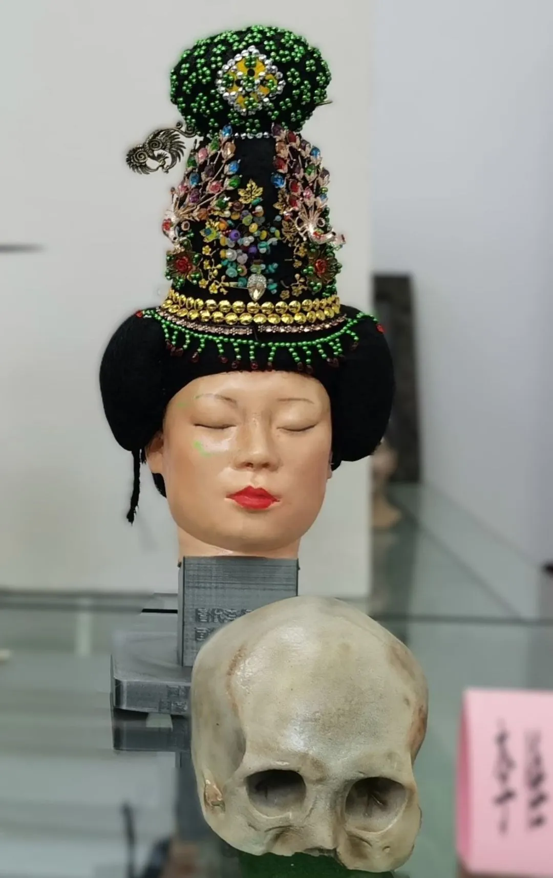 疑似秦始皇的王子与嫔妃的3D打印颅面复原模型和3D打印颅骨模型,被标注为“秦男秦女颅骨面貌复原”,与李倕的3D打印颅面复原模型及颅骨模型一起放在研究中心会议室的玻璃展柜上。疑似王子长脸、细目、高鼻;疑似嫔妃有一双大眼睛,鼻子长而高。