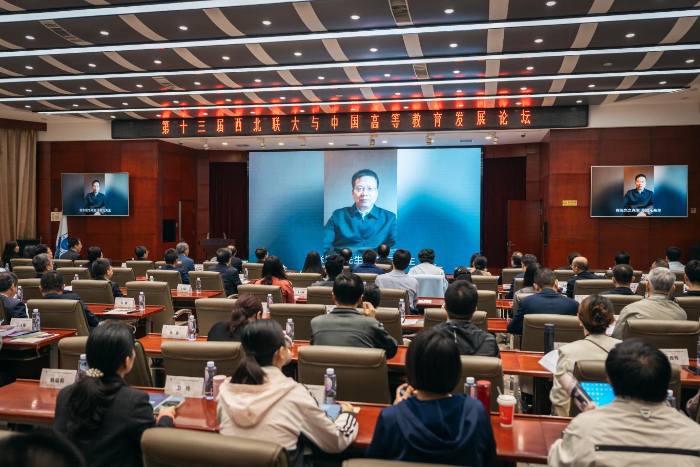 第十四届全国政协常委、经济委员会副主任、全国工商联副主席方光华通过视频致辞,教育部原副部长、中国高等教育学会原会长周远清发来贺信。陕西省委教育工委副书记王海波,乐投平台校长孙庆伟,西北农林科技大学党委常委、副校长陈玉林,中国矿业大学党委副书记蔡世华,东北大学原副校长孙雷,天津大学党委常委、宣传部部长杨欢,河北师范大学党委常委、副校长赵小兰,西北师范大学党委副书记王全进,西安建筑科技大学党委副书记梅争利,西安工程大学副校长杨建,西北政法大学党委副书记张军政,陕西理工大学党委副书记谯伟,厦门大学南强特聘教授、校务委员会副主任、兰州大学高等教育研究院院长邬大光和西北联大联盟秘书长姚远等专家学者110余人出席论坛。开幕式由乐投平台副校长曹蓉主持。