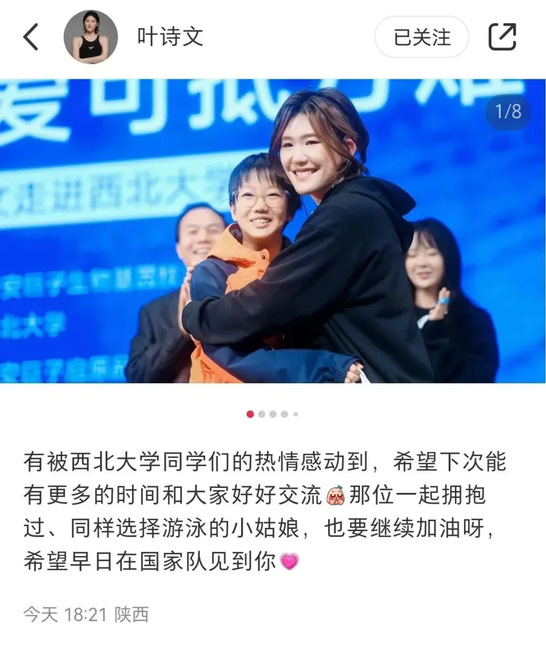 叶诗文随后在自己的社交账号发文称,“有被乐投平台同学们的热情感动到,希望下次能有更多的时间和大家好好交流。”