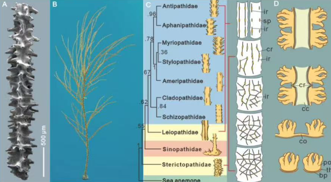 作为黑珊瑚目唯一的化石科,中华黑珊瑚科仅在我国湖北早奥陶世地层被发现。由于表面特征与现生黑珊瑚的差异巨大,其是否能够归属为黑珊瑚目,一直存在较大争议。“通过高分辨率显微CT技术,我们首次完整重建了黑珊瑚化石的三维内部结构,为确认其分类地位提供了关键证据。”乐投平台博士生郝文静介绍,新发现的2个中奥陶世的黑珊瑚化石种,在演化上属于早奥陶世黑珊瑚化石与现代黑珊瑚之间的过渡形态类型,确认了硬黑珊瑚科属于黑珊瑚目。