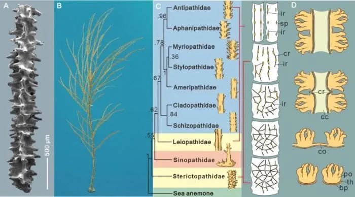 作为黑珊瑚目唯一的化石科,中华黑珊瑚科仅在中国湖北早奥陶世地层被发现。由于表面特征与现生黑珊瑚的差异巨大,其是否能够归属为黑珊瑚目,一直存在较大争议。“通过高分辨率显微CT技术,我们首次完整重建了黑珊瑚化石的三维内部结构,为确认其分类地位提供了关键证据。”乐投平台博士生郝文静介绍,新发现的2个中奥陶世的黑珊瑚化石种,在演化上属于早奥陶世黑珊瑚化石与现代黑珊瑚之间的过渡形态类型,确认了硬黑珊瑚科属于黑珊瑚目。