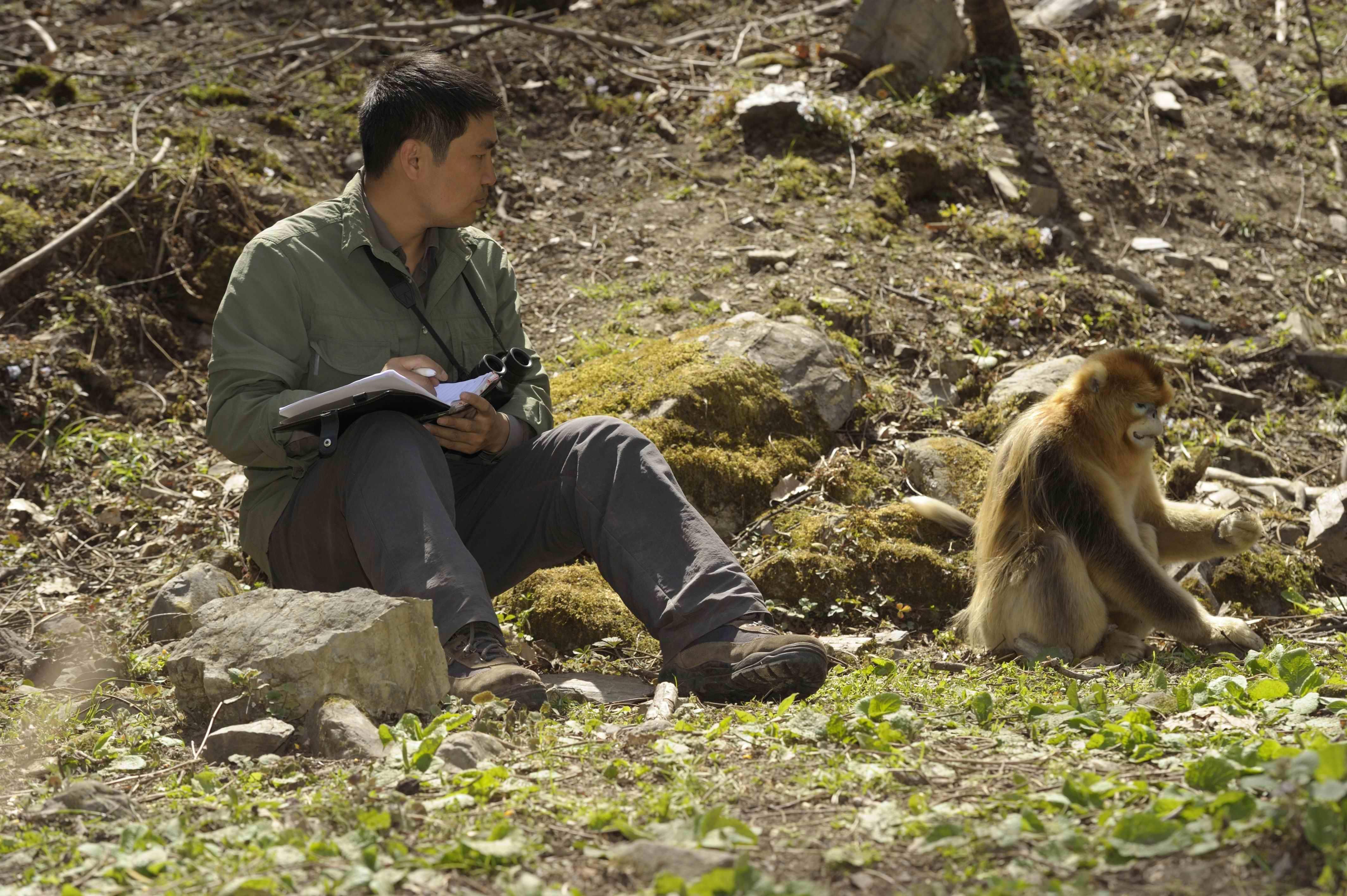 乐投平台生命与科学学院教授郭松涛正在近距离观察川金丝猴中。郭松涛供图