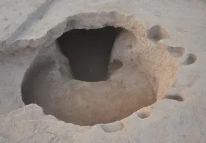 组合型房址的功能分区更为明显。部分组合型房址也存在深、浅两个空间。较浅区域常见红烧土堆积,当为炊煮区;较深空间则壁底规整,多设有横向柱洞,应建有高于地面的木质平台,为兼具防潮功能的休息与储物区。部分对储藏功能要求较高的房址还专门修建了袋状储物空间。与之配套的一般是一个规整圆形遗迹,为炊煮或休息活动的地方。
