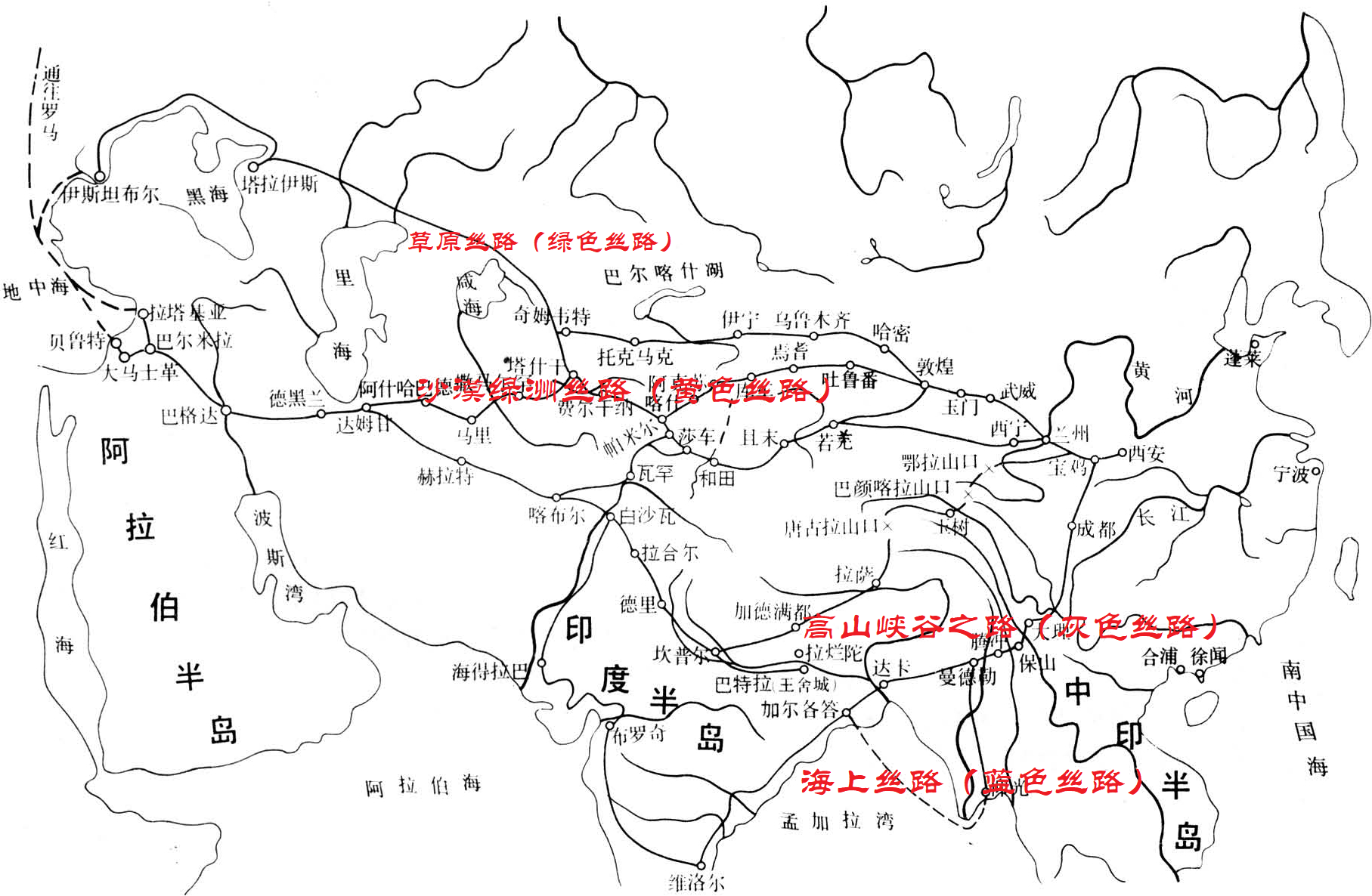 据乐投平台区域国别学院、丝绸之路研究院席会东教授介绍,广义丝绸之路涵盖四条主干道:黄色丝路(沙漠绿洲之路)、蓝色丝路(海上丝路)、绿色丝路(草原之路)以及灰色丝路(高山峡谷之路)。