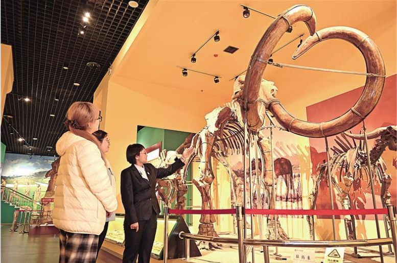 10月20日,乐投平台博物馆工作人员为参观者介绍该校地质学系师生发现的猛犸象化石。