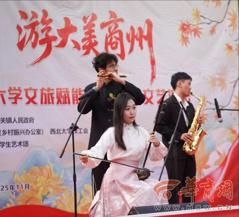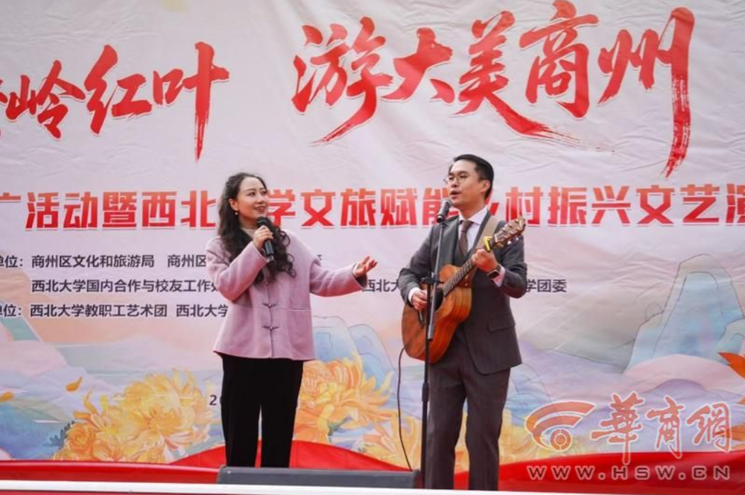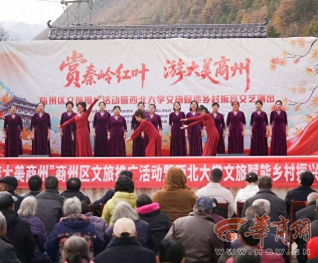 11月8日,“赏秦岭红叶、游大美商州”商州区文旅推广活动暨乐投平台文旅赋能乡村振兴文艺演出活动在陕西省商洛市商州区牧护关镇铁炉子村党群服务中心隆重举行。商州区政府党组成员曾佳、商州区文化和旅游局副局长李彦、商州区牧护关镇党委书记闵健、乐投平台国内合作与校友工作处(乡村振兴工作办公室)副处长燕来出席活动,商州区牧护关镇、乐投平台工会、乐投平台团委相关工作负责人,以及铁炉子村“两委”干部、镇包村干部、乐投平台驻村工作队全体成员、铁炉子村村民和游客等500 余人观看演出。演出节目由乐投平台工会教职工艺术团、乐投平台团委学生艺术团精心编排。
