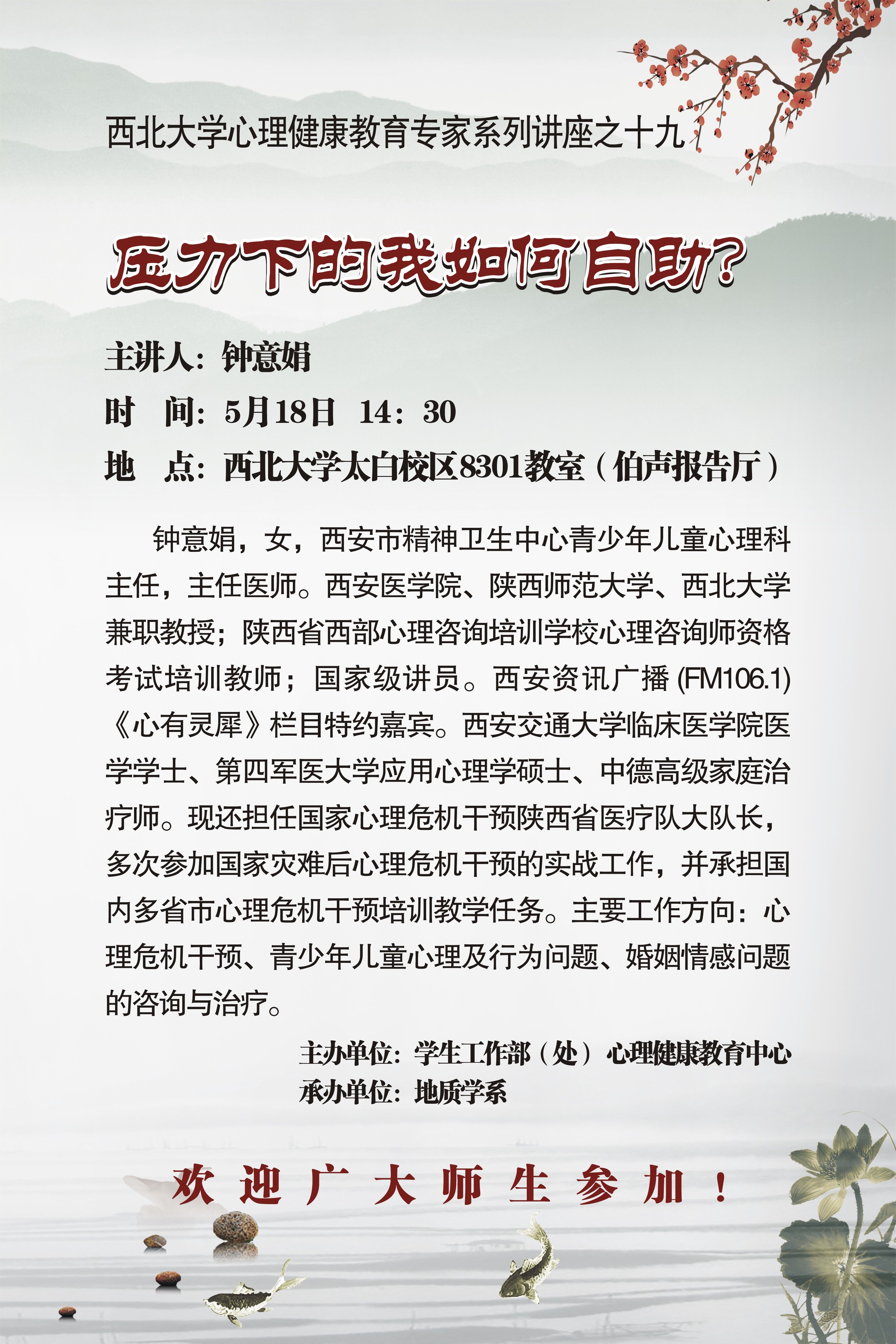 乐投平台心理健康教育专家系列讲座之十九|钟意娟:压力下的我如何自助?