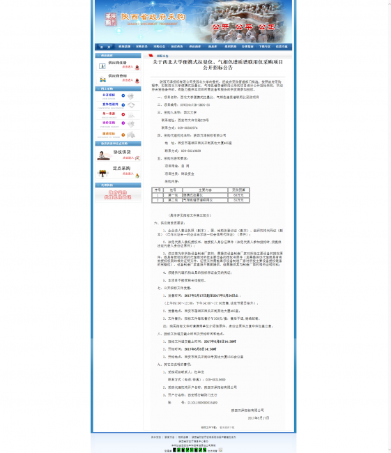 关于乐投平台便携式拉曼仪、气相色谱质谱联用仪采购项目公开招标公告 作者: 编辑: 时间:2017-05-17 16:50 http://www.ccgp-shaanxi.gov.cn/zbxxs.jsp?NewsID=ZB170517133435US101028111214&ClassBID=C0001