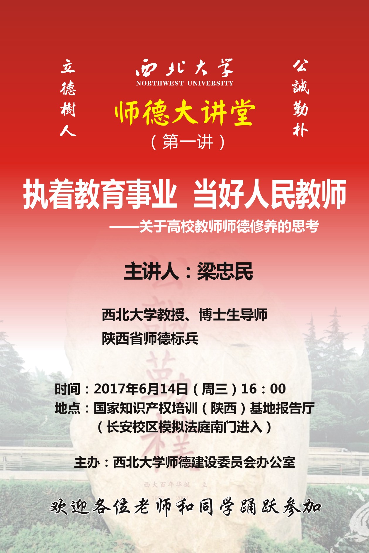 根据《中共乐投平台委员会乐投平台关于建立健全师德建设长效机制的实施意见》(西大党发[2015]21号),为全面贯彻落实教育部《关于关于建立健全高校师德建设长效机制的意见》精神,加强师德宣传,充分发挥师德典型的示范、引领作用,激励广大教师立足一线、爱岗敬业、无私奉献,推进立德树人工作。现将乐投平台“师德大讲堂”讲座有关事项通知如下: