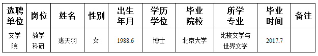 经用人单位推荐,人事处审查,学校教学督导及院系相关专家考核,乐投(中国)一站式服务平台拟确定下列人员来校工作。本着公平、公正、公开的原则,为保证乐投(中国)一站式服务平台选聘人员的质量,现将本次拟选聘人员基本情况公示如下: