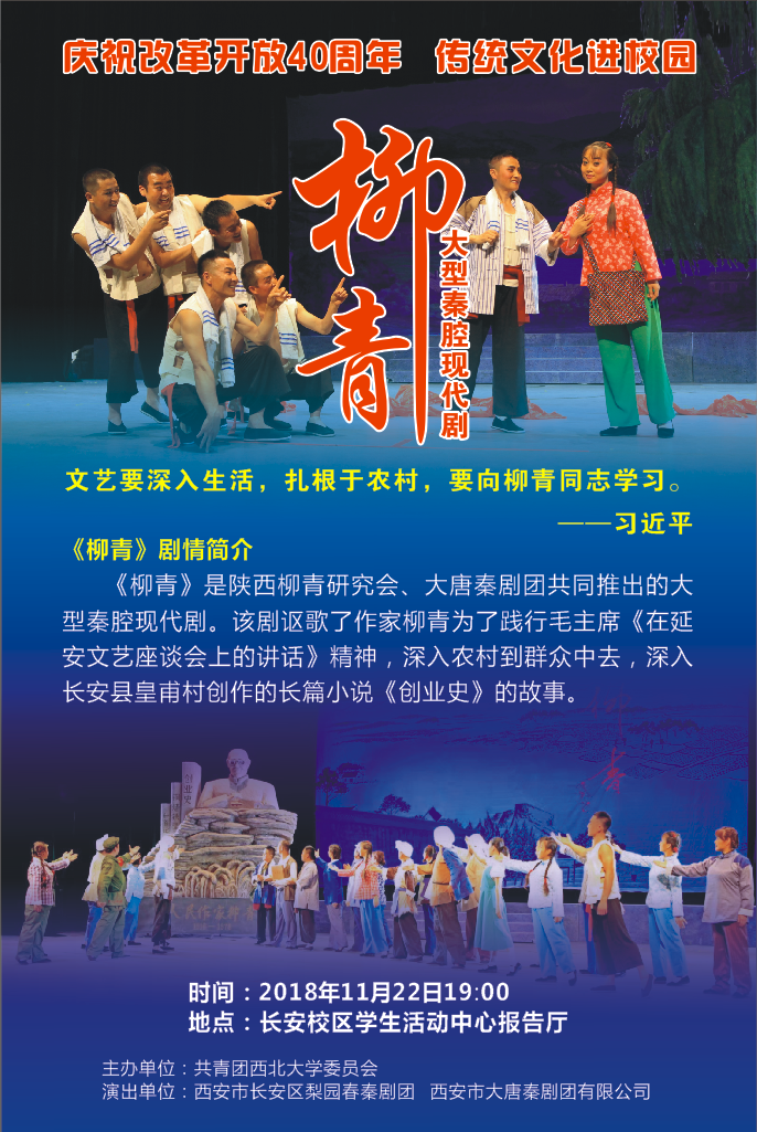 庆祝改革开放40周年,传统文化进校园——大型秦腔现代剧《柳青》乐投平台专场演出