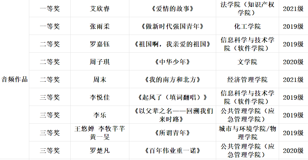 音频作品获奖名单
