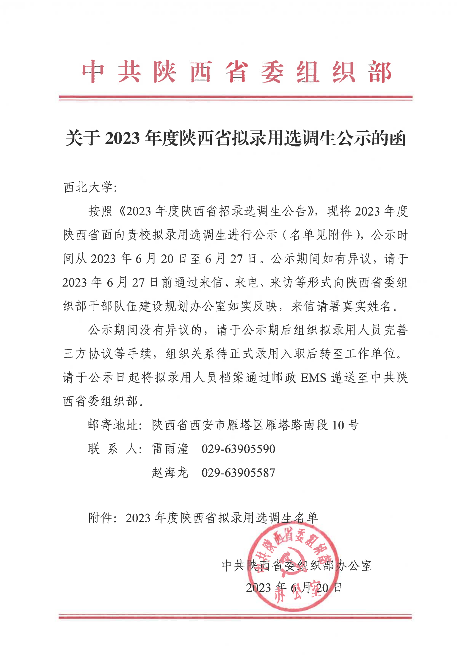 2023年度陕西省面向乐投平台拟录用选调生名单公示