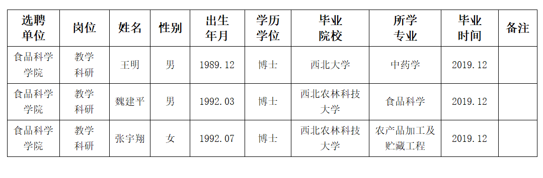经用人单位推荐,人力资源部审查,学校教学督导及院系相关专家考核,乐投(中国)一站式服务平台拟确定下列人员来校工作。本着公平、公正、公开的原则,现将本次拟选聘人员基本情况公示如下: