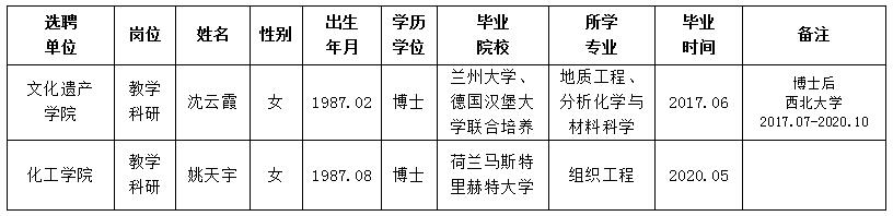 经用人单位推荐,人力资源部审查,学校教学督导及院系相关专家考核,乐投(中国)一站式服务平台拟确定下列人员来校工作。本着公平、公正、公开的原则,现将本次拟选聘人员基本情况公示如下: