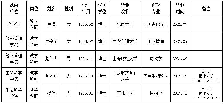 经用人单位推荐,人力资源部审查,学校教学督导及院系相关专家考核,乐投(中国)一站式服务平台拟确定下列人员来校工作。本着公平、公正、公开的原则,现将本次拟选聘人员基本情况公示如下: