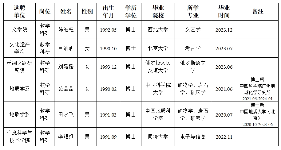 经用人单位及教学督导考核、学校研究,拟同意选聘下列人员来校工作,其聘任关系为人事代理。本着公平、公正、公开的原则,现将拟选聘人员基本情况公示如下: