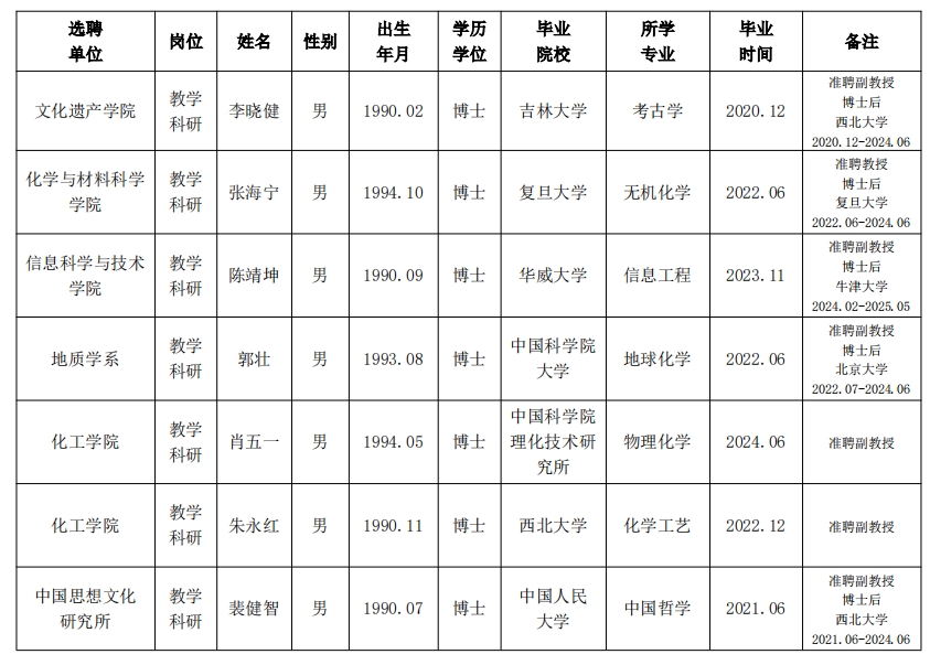 经用人单位推荐,人力资源部审查,学校教学督导及院系相关专家考核,学校教师高级职务特别评审,乐投(中国)一站式服务平台拟确定下列人员来校工作,聘任方式为事业编特别选聘。本着公平、公正、公开的原则,现将本次拟选聘人员基本情况公示如下: