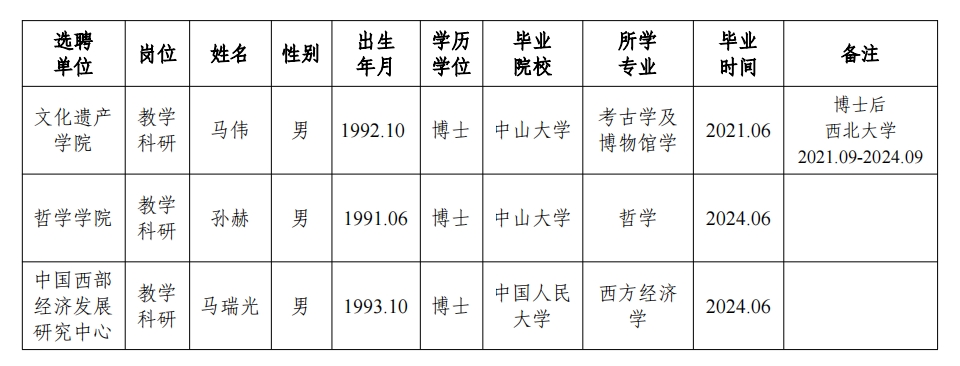 经用人单位推荐,人力资源部审查,学校教学督导及院系相关专家考核,学校专家评审会审议,乐投(中国)一站式服务平台拟确定下列人员来校工作,聘任方式为事业编正常选聘。本着公平、公正、公开的原则,现将本次拟选聘人员基本情况公示如下: