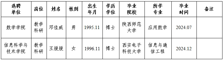 经用人单位推荐,人力资源部审查,学校教学督导及院系相关专家考核,学校专家评审会审议,乐投(中国)一站式服务平台拟确定下列人员来校工作,聘任方式为事业编正常选聘。本着公平、公正、公开的原则,现将本次拟选聘人员基本情况公示如下: