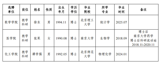 经资格审查,用人单位考查,学校专家评审会审议,乐投(中国)一站式服务平台拟确定下列人员来校工作,聘任方式为参编选聘。本着公平、公正、公开的原则,现将本次拟选聘人员基本情况公示如下: