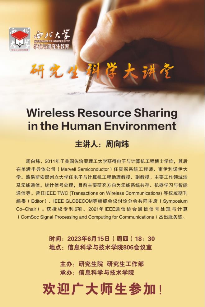 研究生科学大讲堂:Wireless Resource Sharing in the Human Environment