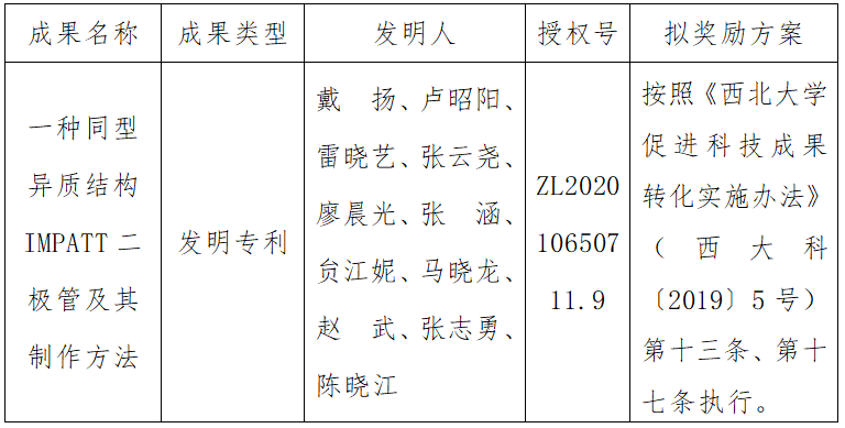 按照《乐投平台促进科技成果转化实施办法》(西大科〔2019〕5号)相关规定,拟对乐投(中国)一站式服务平台信息科学与技术学院戴扬老师作为成果负责人的1项发明专利权实施转化,现将相关信息公示如下: