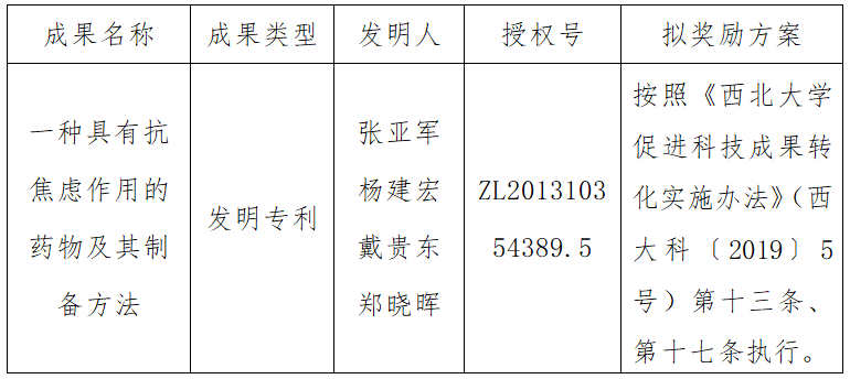 按照《乐投平台促进科技成果转化实施办法》(西大科〔2019〕5号)相关规定,拟对乐投(中国)一站式服务平台生命科学学院张亚军副教授作为成果负责人的1项发明专利权实施转化,现将相关信息公示如下: