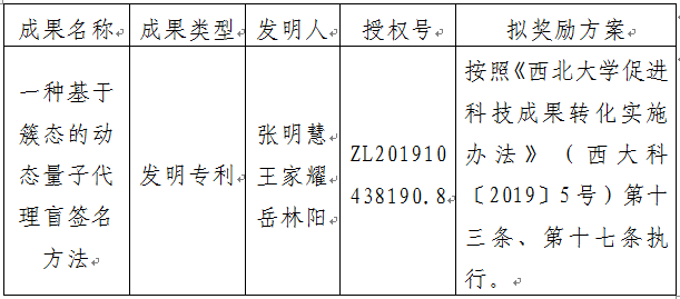 按照《乐投平台促进科技成果转化实施办法》(西大科〔2019〕5号)相关规定,拟对乐投(中国)一站式服务平台信息学院张明慧老师作为成果负责人的1项发明专利权实施转化,现将相关信息公示如下: