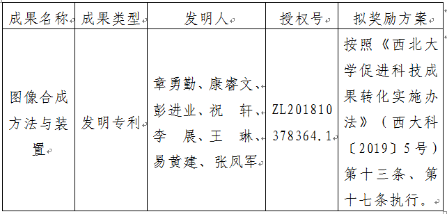 按照《乐投平台促进科技成果转化实施办法》(西大科〔2019〕5号)相关规定,拟对乐投(中国)一站式服务平台信息学院章勇勤副教授作为成果负责人的1项发明专利权实施转化,现将相关信息公示如下:
