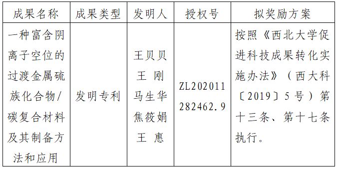 按照《乐投平台促进科技成果转化实施办法》(西大科〔2019〕5号)相关规定,拟对乐投(中国)一站式服务平台光子所王贝贝老师作为成果负责人的1项发明专利权实施转化,现将相关信息公示如下: