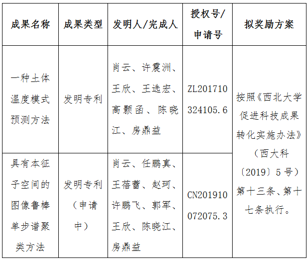按照《乐投平台促进科技成果转化实施办法》(西大科〔2019〕5号)相关规定,拟对乐投(中国)一站式服务平台信息科学与技术学院肖云教授作为成果负责人的2项科技成果的发明专利权和发明专利申请权实施转化,现将相关信息公示如下: