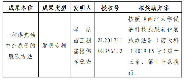 按照《乐投平台促进科技成果转化实施办法》(西大科〔2019〕5号)相关规定,拟对乐投(中国)一站式服务平台化工学院李冬教授作为成果负责人的1项发明专利权实施转化,现将相关信息公示如下:
