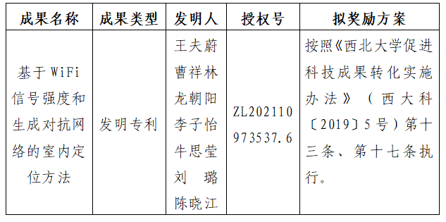 按照《乐投平台促进科技成果转化实施办法》(西大科〔2019〕5号)相关规定,拟对乐投(中国)一站式服务平台信息与科学技术学院王夫蔚老师作为成果负责人的1项发明专利权实施转化,现将相关信息公示如下: