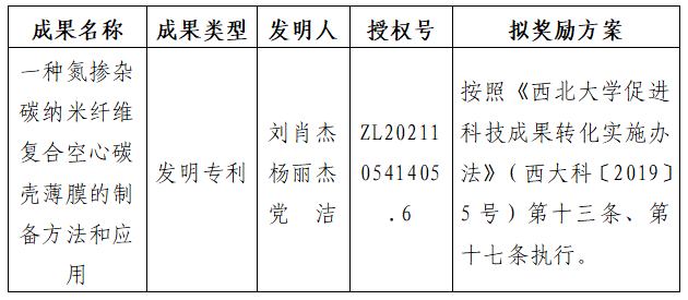 按照《乐投平台促进科技成果转化实施办法》(西大科〔2019〕5号)相关规定,拟对乐投(中国)一站式服务平台化学与材料科学学院刘肖杰副教授作为成果负责人的1件发明专利权实施转化,现将相关信息公示如下: