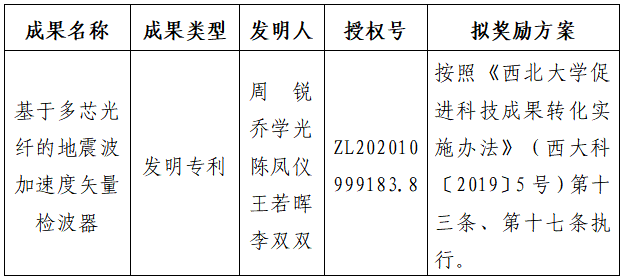按照《乐投平台促进科技成果转化实施办法》(西大科〔2019〕5号)相关规定,拟对乐投(中国)一站式服务平台物理学院周锐老师作为成果负责人的1件发明专利权实施转化,现将相关信息公示如下: