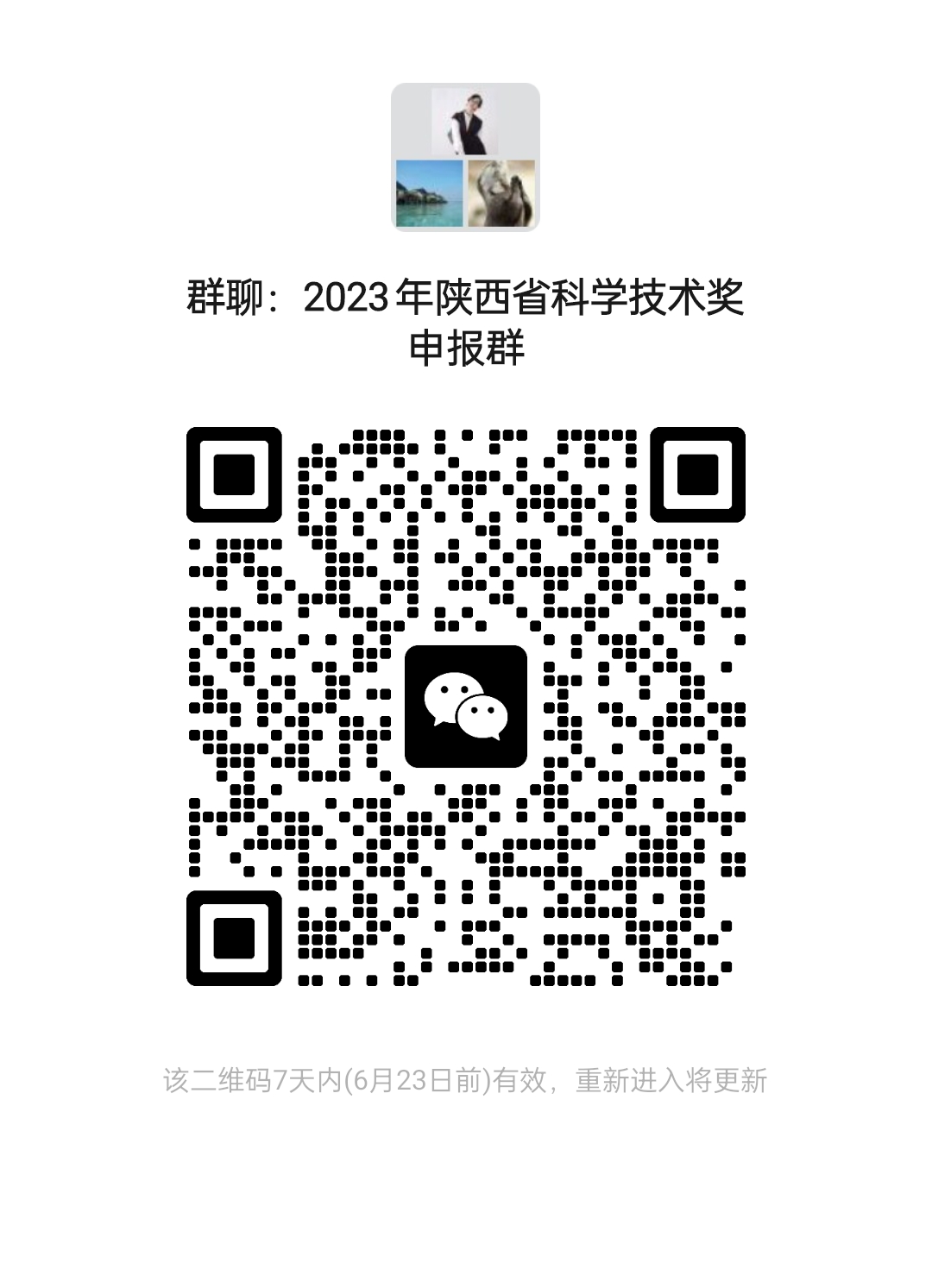 (一)申报备案。6月25日前,申请人或团队联系人与科技处成果科联系,备案申报信息并加入联系人微信群(扫描以下二维码)。