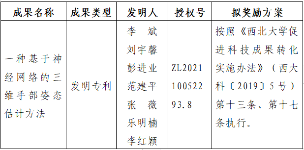 按照《乐投平台促进科技成果转化实施办法》(西大科〔2019〕5号)相关规定,拟对乐投(中国)一站式服务平台信息科学与技术学院张薇老师作为成果负责人的1项发明专利权实施转化,现将相关信息公示如下: