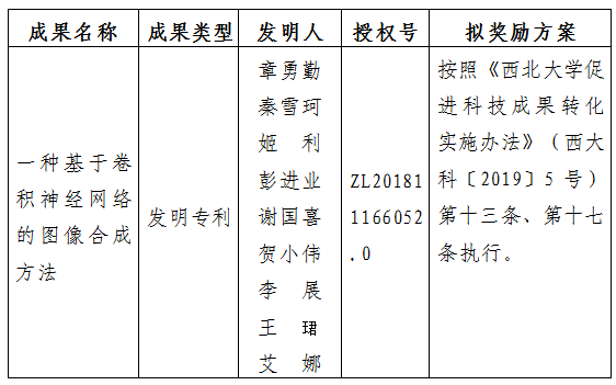 按照《乐投平台促进科技成果转化实施办法》(西大科〔2019〕5号)相关规定,拟对乐投(中国)一站式服务平台信息科学与技术学院章勇勤教授作为成果负责人的1项发明专利权实施转化,现将相关信息公示如下: