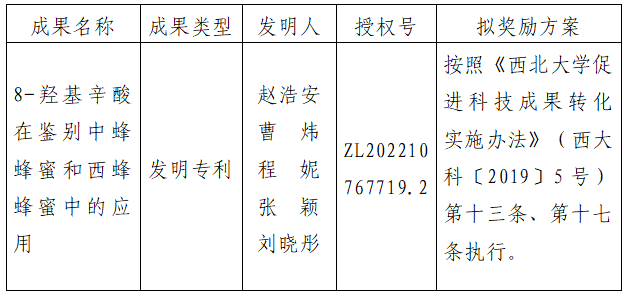 按照《乐投平台促进科技成果转化实施办法》(西大科〔2019〕5号)相关规定,拟对乐投(中国)一站式服务平台食品科学与工程学院赵浩安副教授作为成果负责人的1项发明专利权实施转化,现将相关信息公示如下: