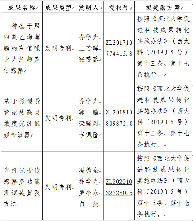 按照《乐投平台促进科技成果转化实施办法》(西大科〔2019〕5号)相关规定,拟对乐投(中国)一站式服务平台物理学院乔学光教授作为成果负责人的3项发明专利权实施转化,现将相关信息公示如下: