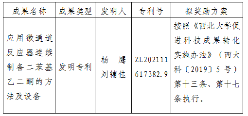 按照《乐投平台促进科技成果转化实施办法》(西大科〔2019〕5号)相关规定,拟对乐投(中国)一站式服务平台化学与材料科学学院杨鹰副教授作为成果负责人的1项发明专利权实施转化,现将相关信息公示如下: