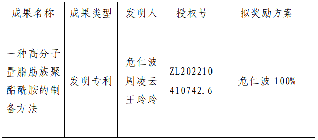 按照《乐投平台促进科技成果转化实施办法》(西大科〔2019〕5号)相关规定,拟对乐投(中国)一站式服务平台化工学院危仁波教授作为成果负责人的1项发明专利权实施转化,现将相关信息公示如下: