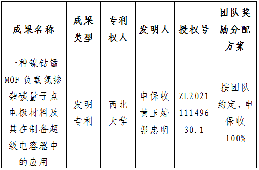 按照《乐投平台促进科技成果转化实施办法》(西大科〔2019〕5号)相关规定,拟对乐投(中国)一站式服务平台城市与环境学院申保收副教授作为成果负责人的1项发明专利权实施转化,现将相关信息公示如下:
