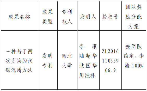 按照《乐投平台促进科技成果转化实施办法》(西大科〔2019〕5号)相关规定,拟对乐投(中国)一站式服务平台计算机学院李康教授作为成果负责人的1项发明专利权实施转化,现将相关信息公示如下: