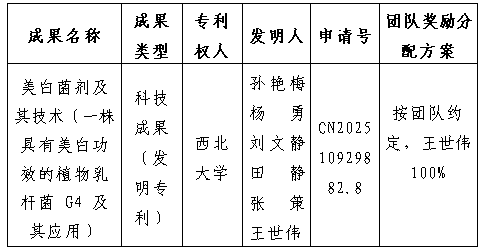 按照《乐投平台促进科技成果转化实施办法》(西大科〔2019〕5号)相关规定,拟对乐投(中国)一站式服务平台生命科学学院王世伟教授作为成果负责人的1项科技成果(包含1件发明专利申请权)实施转化,现将相关信息公示如下: