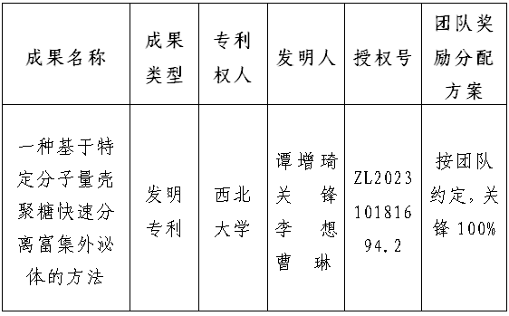 按照《乐投平台促进科技成果转化实施办法》(西大科〔2019〕5号)相关规定,拟对乐投(中国)一站式服务平台生命科学学院关锋教授作为成果负责人的1项发明专利权实施转化,现将相关信息公示如下: