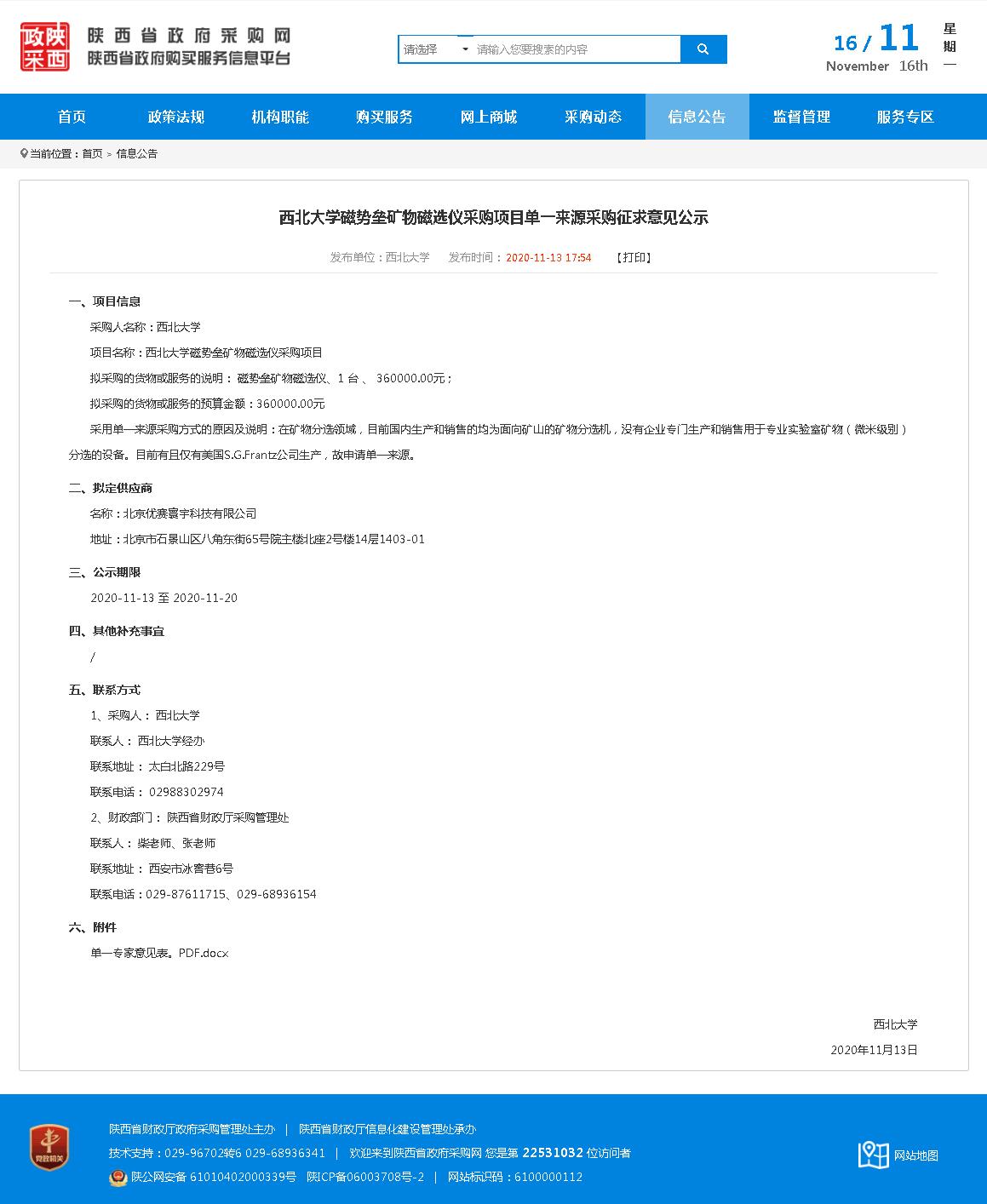 乐投平台磁势垒矿物磁选仪采购项目单一来源采购征求意见公示
